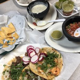 This place is super yummy. Being from California I immediately went on my taco journey and I must say that I'm super picky about how they're prepared. But this place feels like legit Mexico inside. I walked in there today and they had a whole mariachi band and an accordion player jamming to some classic Mexican folk songs lmbo. The tacos were very good and juicy. And we had some bomb queso. The service was fast and Overall it's another taco hit. Your welcome